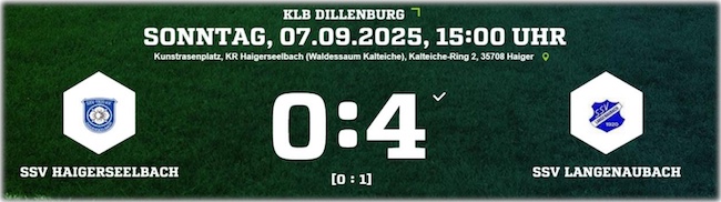 Am kommenden Sonntag, den 07.09.2025 um 15:00 Uhr, ist der SSV Langenaubach beim SSV Haigerseelbach zu Gast. Während die Gastgeber bislang noch ohne Punkt dastehen und mit Platz 14 am Tabellenende rangieren, konnte unser SSV mit bereits 9 Punkten aus den ersten Spielen einen starken Saisonstart hinlegen und belegt aktuell den 6. Tabellenplatz. Auf der Kalteiche will das Team von Trainerduo Thorsten Stapel & Timo Strassen an die guten Leistungen der letzten Wochen anknüpfen und weitere Punkte einfahren. Unterschätzt werden darf der Gegner dabei allerdings keinesfalls - Derbys haben bekanntlich ihre eigenen Gesetze. Anstoß der Partie ist um 15:00 Uhr.