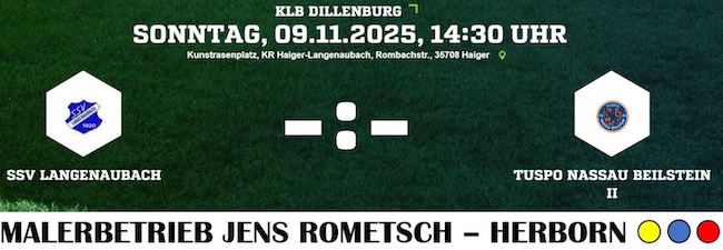 Am kommenden Sonntag (09.11.2025) empfängt der SSV Langenaubach die zweite Mannschaft des TuSpo Beilstein zum Heimspiel auf dem Kunstrasenplatz in Langenaubach. Beide Teams gehen mit unterschiedlichen Ausgangslagen in diese Begegnung. Die Gäste aus Beilstein rangieren derzeit mit 15 Punkten aus 11 Spielen auf dem 9. Tabellenplatz. Am vergangenen Wochenende gelang der Mannschaft von Trainer Joshua Bechtum ein deutlicher 5:2-Erfolg bei der SG Fellerdilln/Niederrossbach II - ein wichtiger Sieg, der für zusätzliches Selbstvertrauen sorgen dürfte. Besonders im Fokus steht dabei Norman Schuster, der mit 7 Treffern der bislang treffsicherste Spieler im TuSpo-Dress ist. Der Gastgeber aus Langenaubach spielt bislang eine hervorragende Saison. Mit 28 Punkten auf dem Konto und dem 2. Tabellenplatz gehört der SSV zu den Spitzenteams der Liga. Das Team von Trainerduo Thorsten Stapel und Timo Strassen will den Heimvorteil nutzen, um den nächsten Dreier einzufahren und weiter Druck auf die Tabellenspitze auszuüben. Anstoß der Partie ist um 14:30 Uhr.