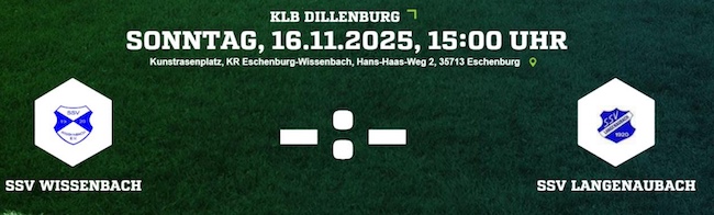 Am kommenden Sonntag (16.11.2025) empfängt der SSV Wissenbach den SSV Langenaubach zum Duell in der B-Liga. Während die Gäste aus Langenaubach als Tabellenzweiter mit breiter Brust anreisen, steckt der Gastgeber weiterhin im Tabellenkeller fest und sucht nach Konstanz. Der SSV Wissenbach konnte in der bisherigen Saison lediglich 11 Punkte aus 13 Spielen sammeln und bleibt damit deutlich hinter den eigenen Erwartungen zurück. Nach schwierigen Wochen gelang dem Team von Trainer Kevin Dietrich am vergangenen Wochenende jedoch ein kleiner Befreiungsschlag: Mit einem 3:1-Sieg zeigte die Mannschaft Moral. Die Gäste aus Langenaubach dagegen befinden sich weiterhin auf Erfolgskurs. Mit dem hart erkämpften 3:2-Heimsieg am letzten Spieltag festigte das Team seinen Platz als engster Verfolger des Spitzenreiters. Dennoch war die Leistung nicht über die gesamte Spielzeit überzeugend – Trainerduo Thorsten Stapel & Timo Strassen und Mannschaft wissen, dass sie sich in Wissenbach steigern müssen, um dort zu bestehen. Beide Teams gehen also mit unterschiedlichen Ausgangslagen in die Begegnung: Wissenbach will an das Erfolgserlebnis der Vorwoche anknüpfen und im Abstiegskampf weiter Boden gutmachen, während Langenaubach den Druck auf die Tabellenspitze aufrechterhalten möchte. Anstoß der Partie auf dem Kunstrasenplatz in Wissenbach ist um 15:00 Uhr.