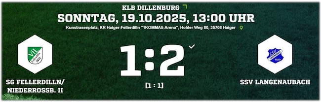 Am Sonntag, den 19. Oktober 2025, um 13:00 Uhr kommt es auf dem Kunstrasenplatz in Fellerdilln zum B-Liga-Spiel zwischen der SG Fellerdilln/Niederrossbach II und dem SSV Langenaubach. Die Gastgeber stehen derzeit auf dem 9. Tabellenplatz und haben in den bisherigen zehn Partien 12 Punkte gesammelt. Mit einem Heimspiel auf eigenem Kunstrasen wollen sie ihre Position verbessern und wichtige Zähler einfahren. Angeführt wird die Mannschaft von Torjäger Benjamin Witt, der mit sechs Treffern der treffsicherste Spieler im Team der SG ist. Der SSV Langenaubach reist dagegen mit breiter Brust nach Fellerdilln. Nach einem überzeugenden 2:0-Sieg am vergangenen Wochenende hat das Team von Trainerduo Thorsten Stapel & Timo Strassen den dritten Tabellenplatz gefestigt und 19 Punkte auf dem Konto. Beide Mannschaften werden alles daran setzen, um sich in diesem Spiel zu beweisen. Die SG Fellerdilln/Niederrossbach II will vor heimischem Publikum die nächsten Punkte einfahren, während der SSV Langenaubach seinen Aufwärtstrend fortsetzen und weitere Zähler sammeln möchte.